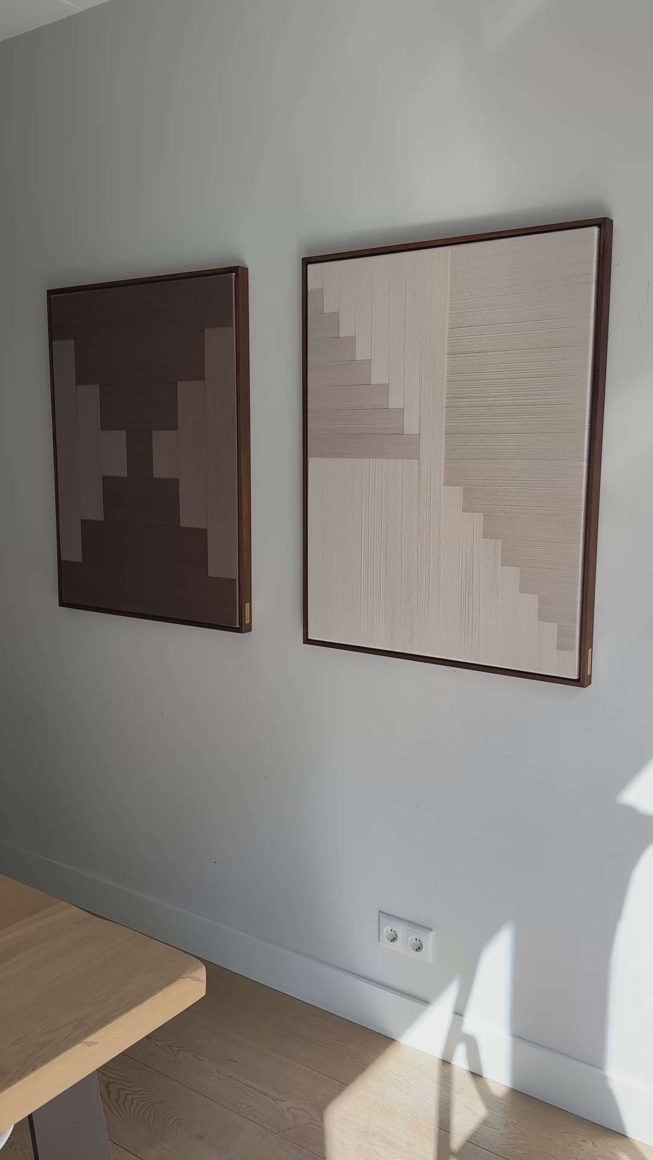 Met deze kunstwerken heb je een krachtig tweeluik – door ons ontworpen voor interieurs waar balans, eenvoud en verfijning samenkomen. Elk werk heeft zijn eigen karakter, maar samen vormen ze een eenheid die perfect past boven een bank, bij de eettafel of in een ruime hal.