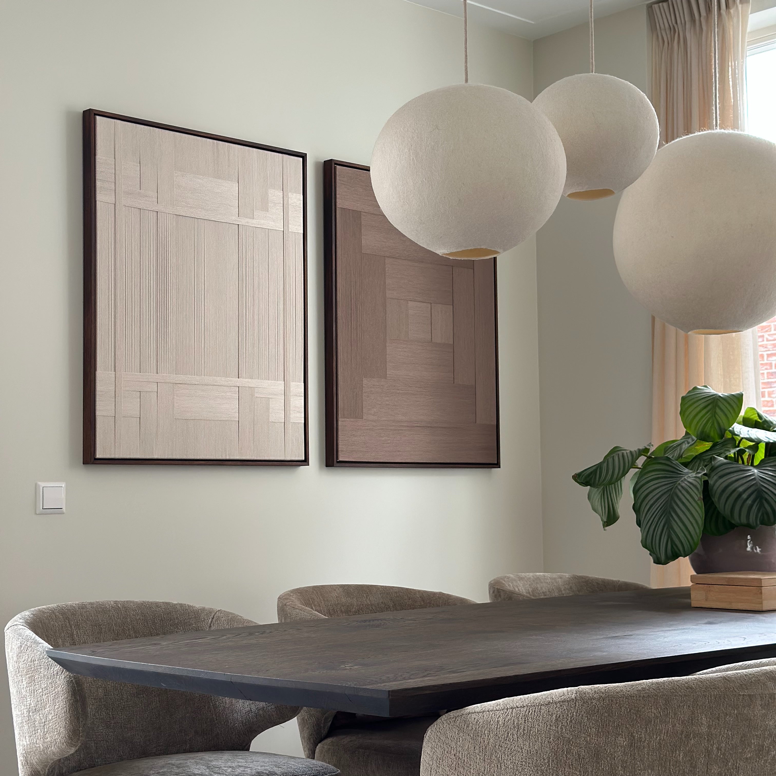 Ontworpen en met de hand vervaardigd door een klein team in ons atelier. Jij bepaalt de kleur, afmeting en lijst – wij creëren een uniek kunstwerk, speciaal voor jou.