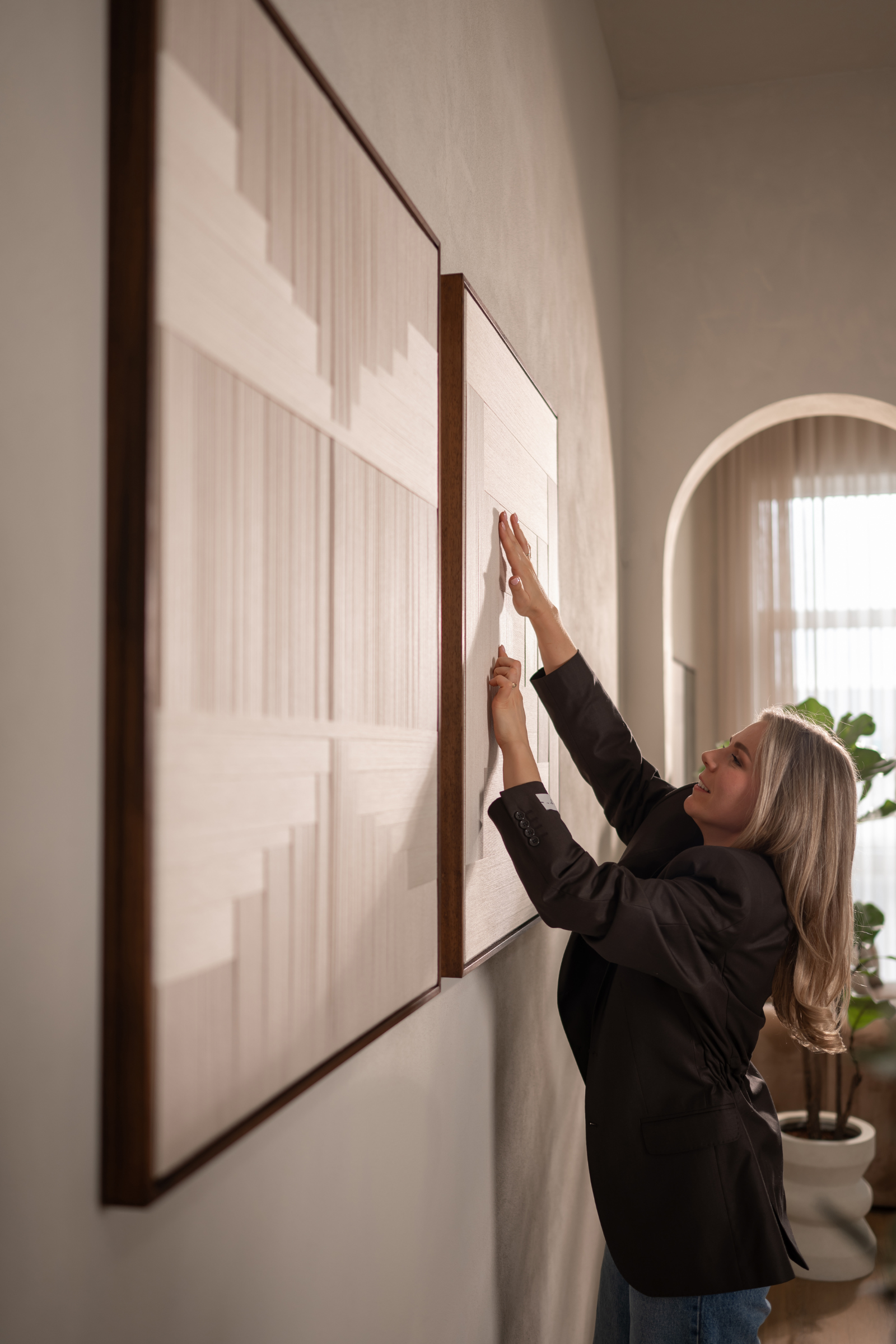 Ontworpen en met de hand vervaardigd door een klein team in ons atelier. Jij bepaalt de kleur, afmeting en lijst – wij creëren een uniek kunstwerk, speciaal voor jou.