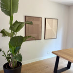 Met een focus op compositie en balans is dit duo artwork een voorbeeld van moderne abstracte kunst die zowel grafisch als rustgevend oogt. Perfect als statement-piece in een Japandi, Scandinavisch of modern interieur.