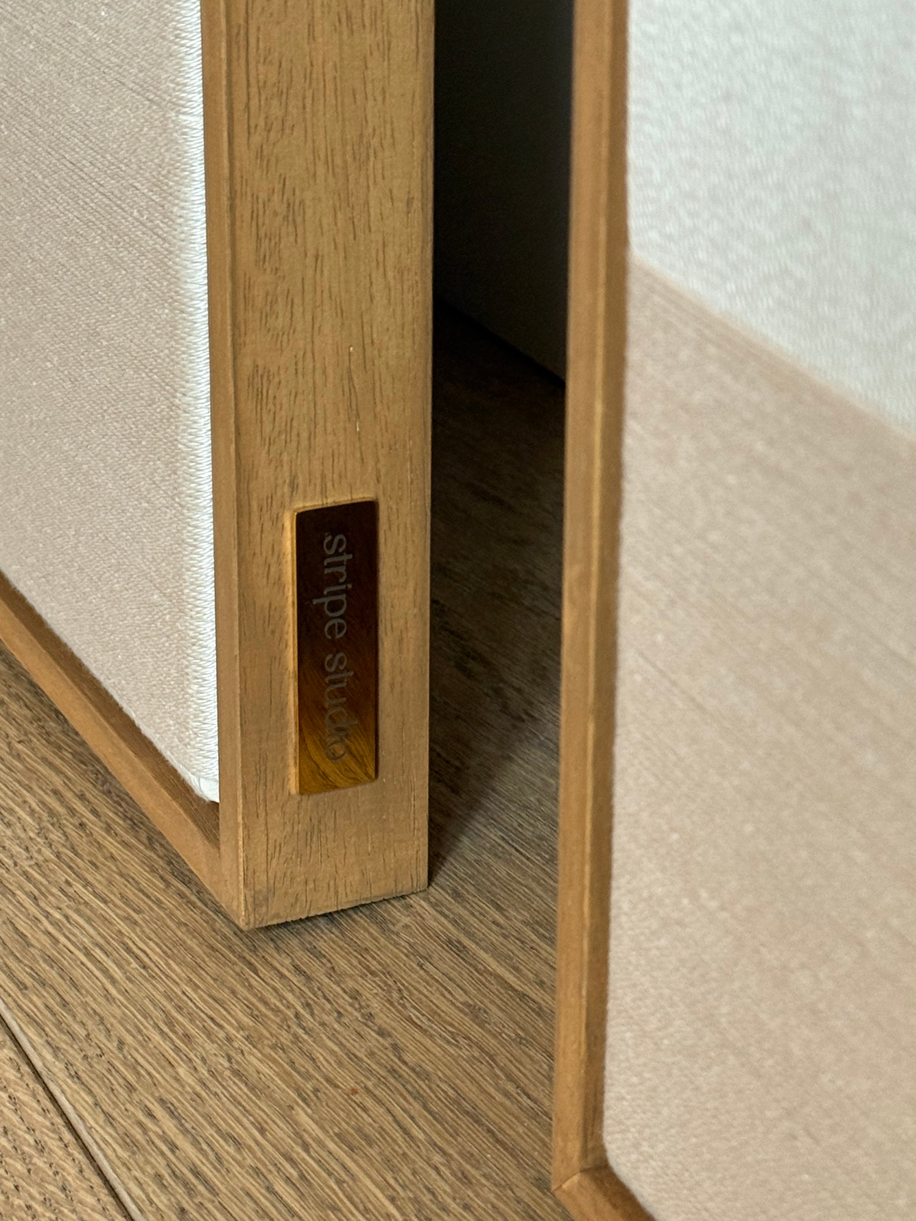 Volledig met de hand gecreëerd uit verfijnde katoenen garen en gespannen op canvas, toont dit duo het herkenbare Stripe Studio handschrift: rijk in textuur, verfijnd in afwerking en tijdloos in uitstraling.