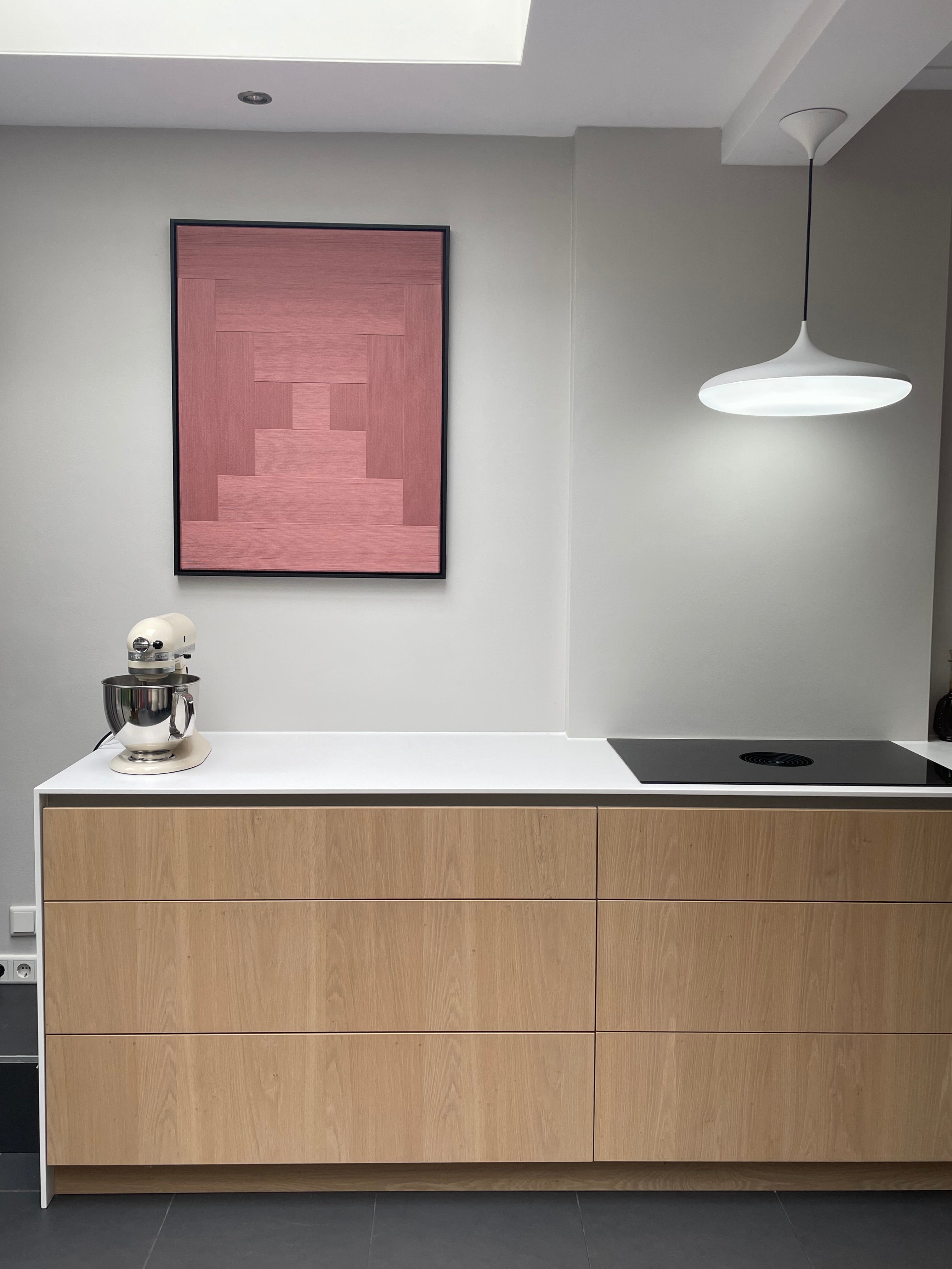 Ontworpen en gemaakt in ons atelier in Nederland. Jij bepaalt de kleur, afmeting en lijst – wij creëren een uniek kunstwerk, speciaal voor jou.