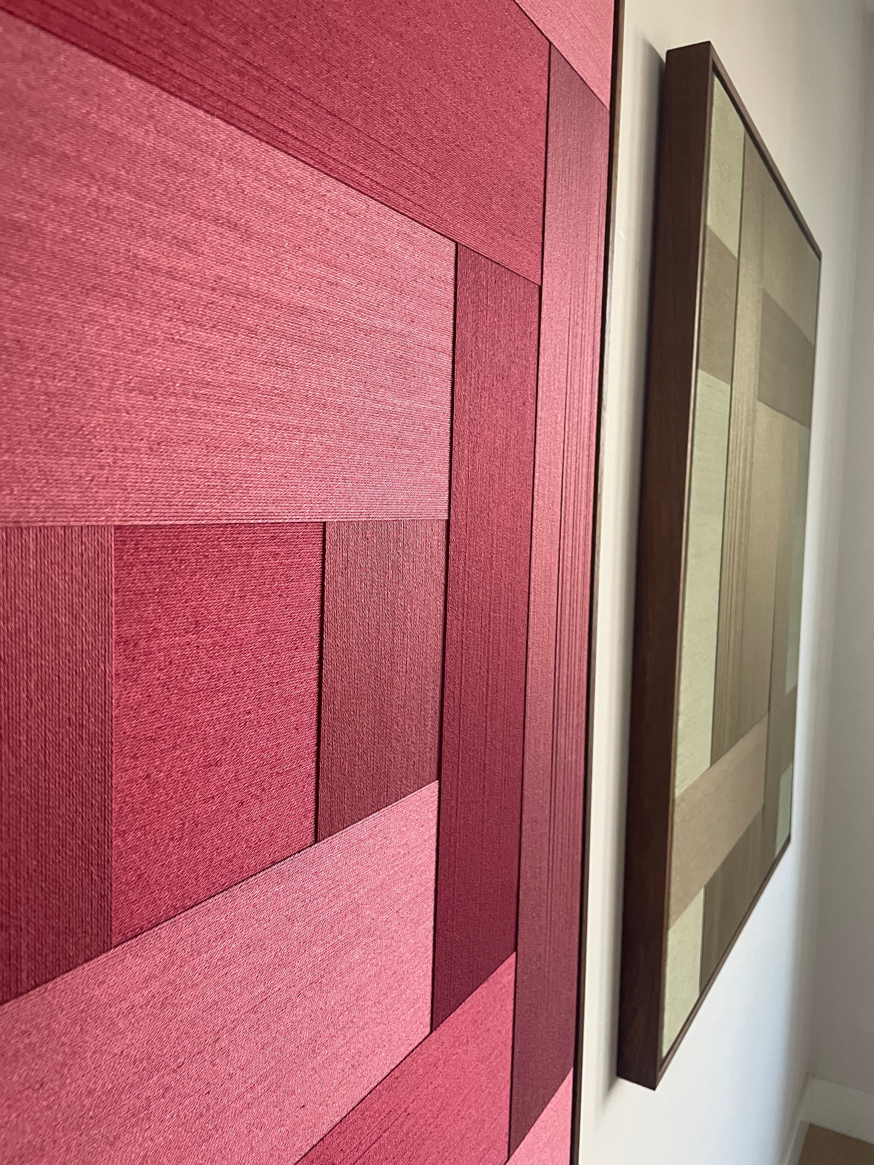 Voor onze kunstwerken maken we gebruik van hoogwaardig katoengaren met een subtiele glans.