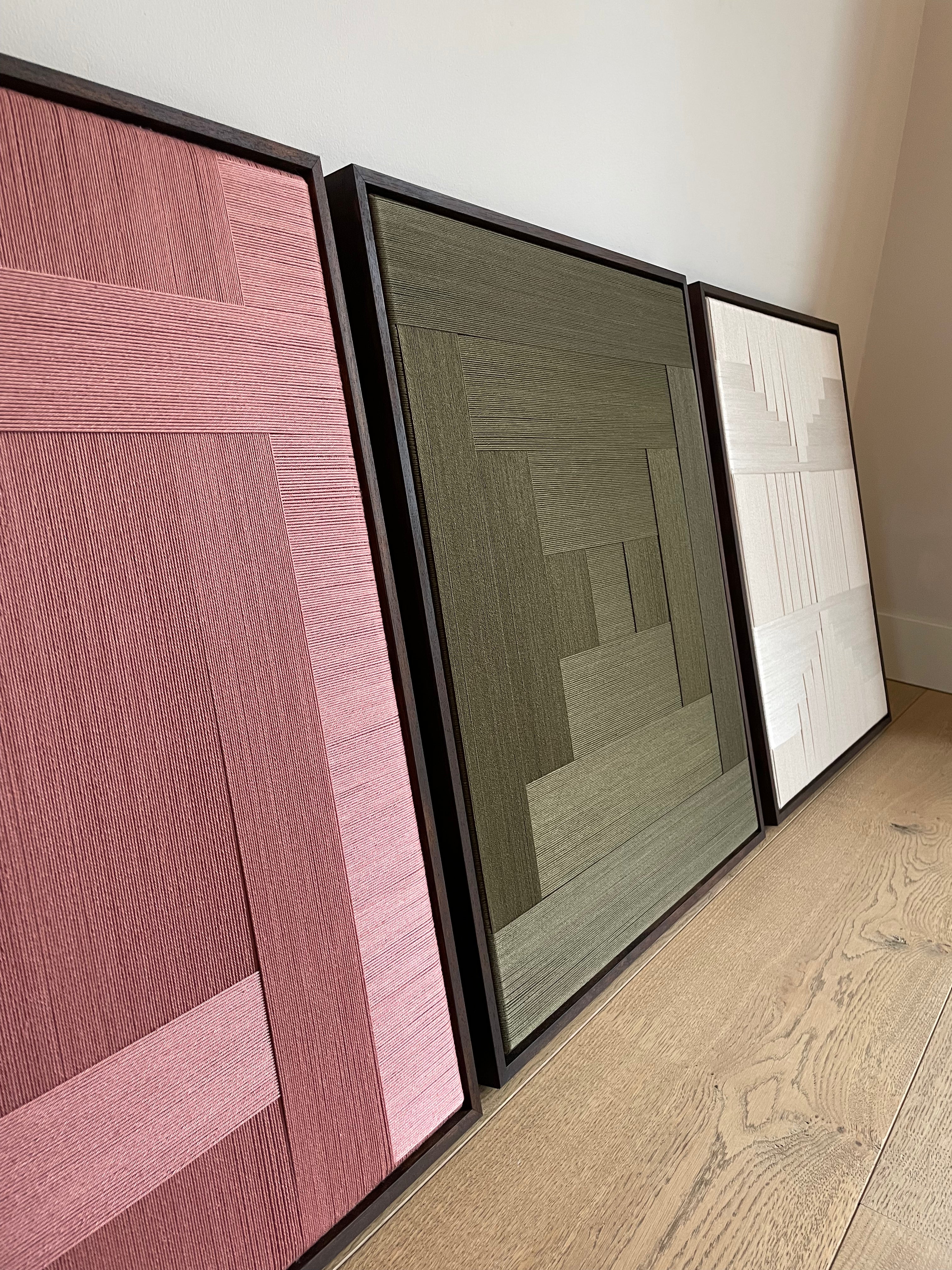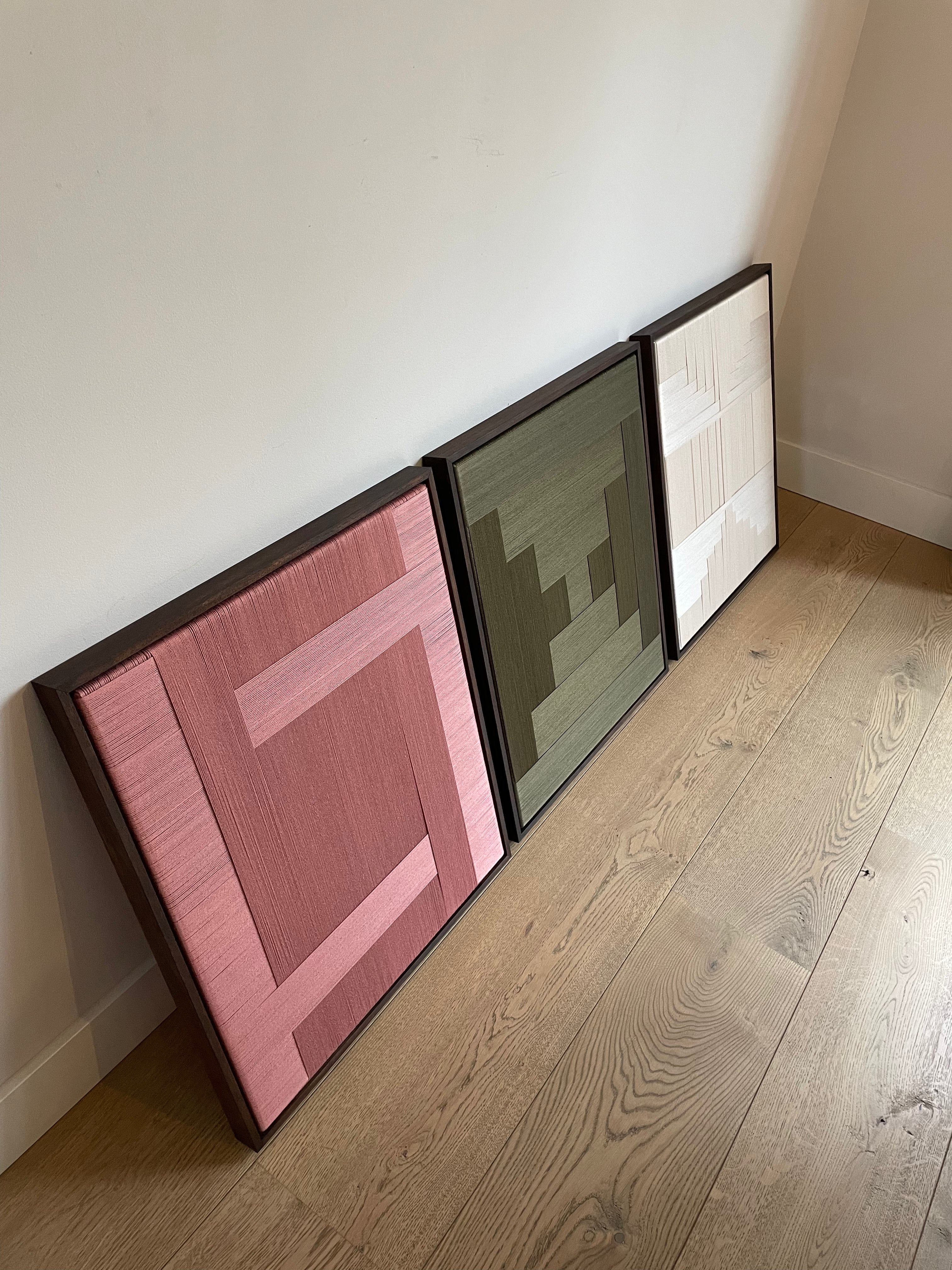 Trio artworks qi, yin & moxa in een door ons zorgvuldig samengesteld kleurenpalet. Hóé mooi is deze combi? Als we de eerste reacties mogen geloven, héél mooi! Artwork qi in olive green, artwork yin in pink terracotta en ons populairste artwork moxa in beige.