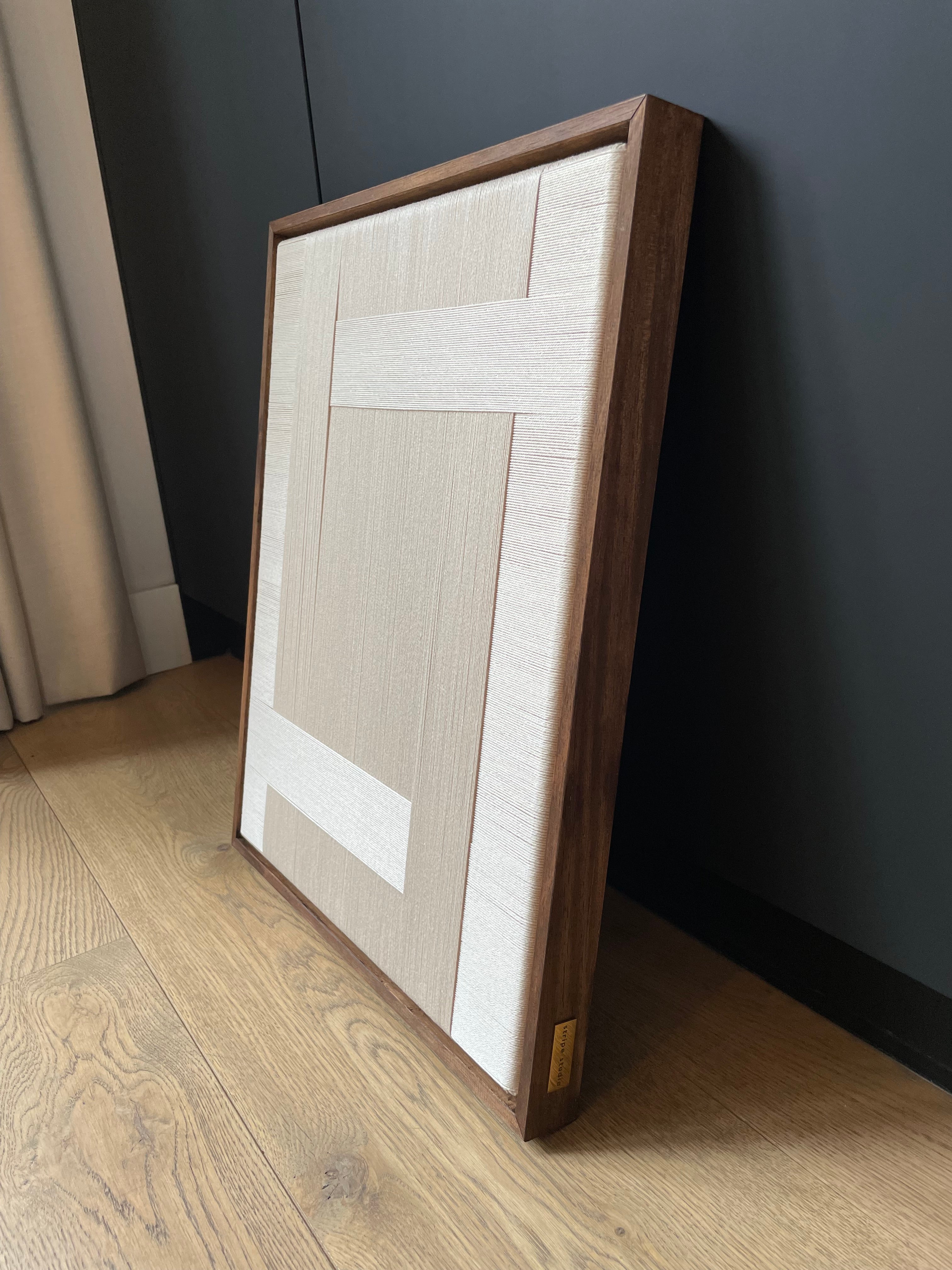 Voor onze kunstwerken maken we gebruik van hoogwaardig katoengaren met een subtiele glans.