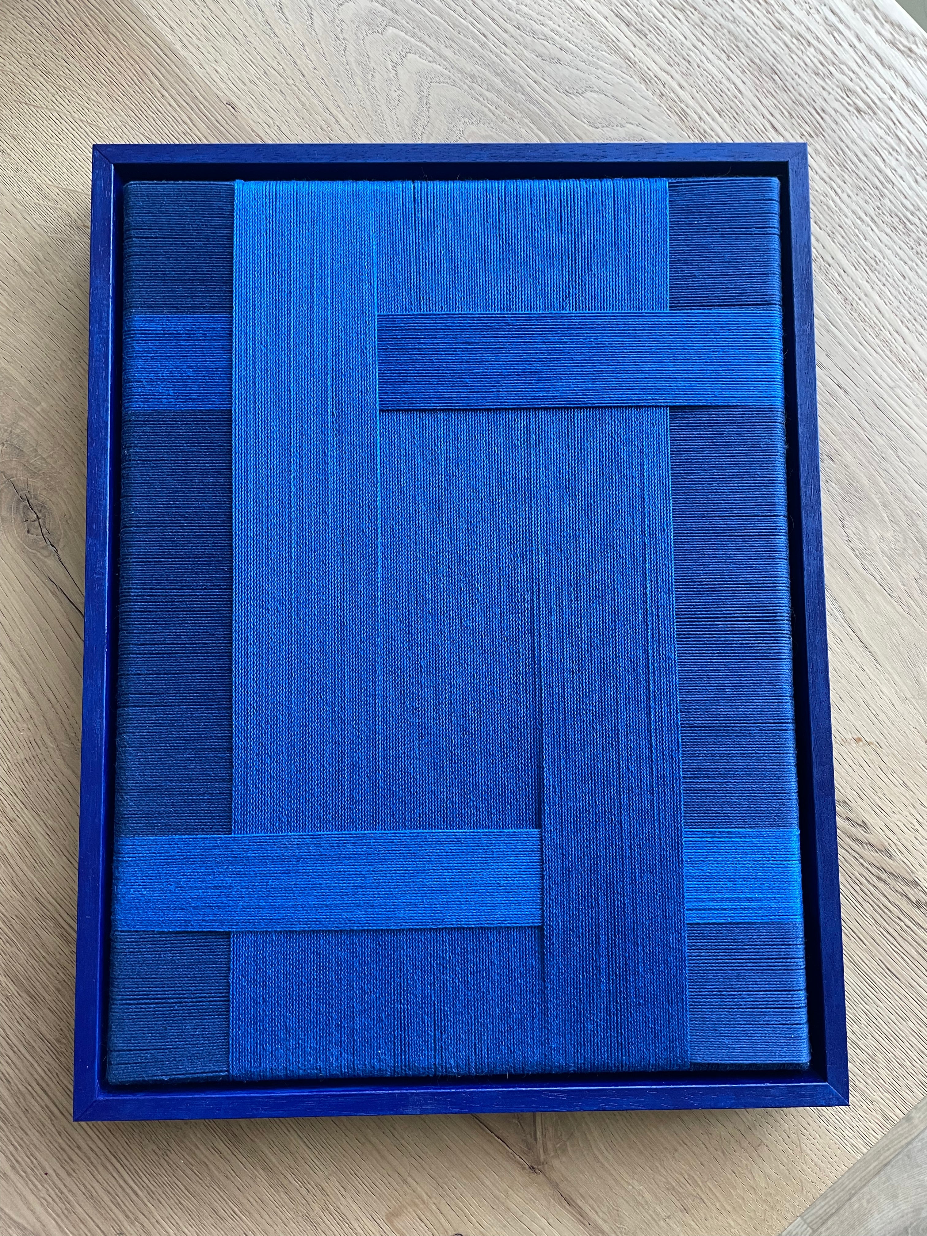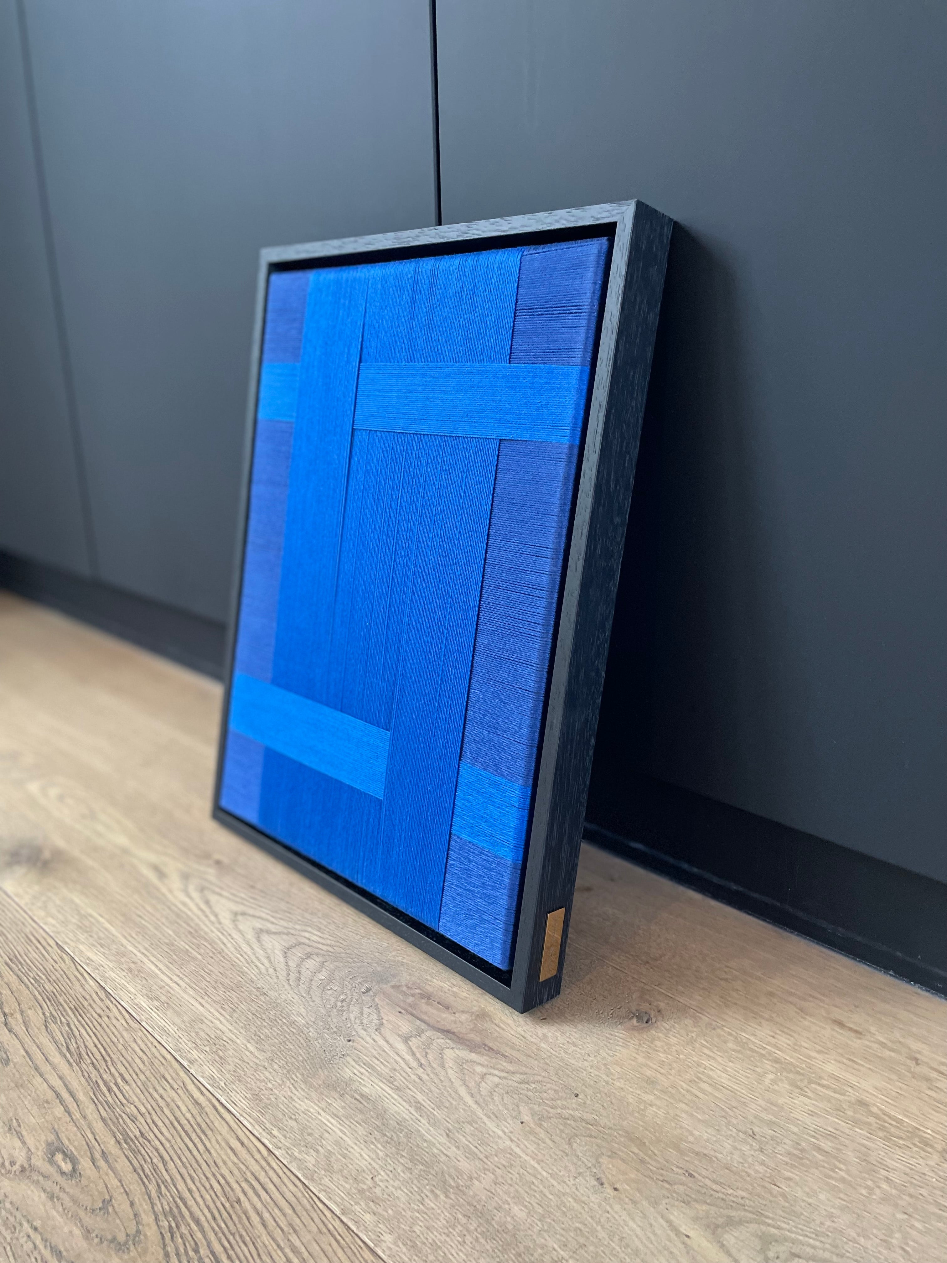 Voorbeeld foto: 53 x 43 cm (L-B) in kleur royal blue zwart houten lijst en kleur royal blue in ton sur ton lijst.